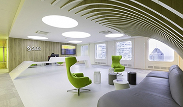 這些是軟件開發公司SAS在法國展示的辦公室裝修設計的實景圖片,主要是通…